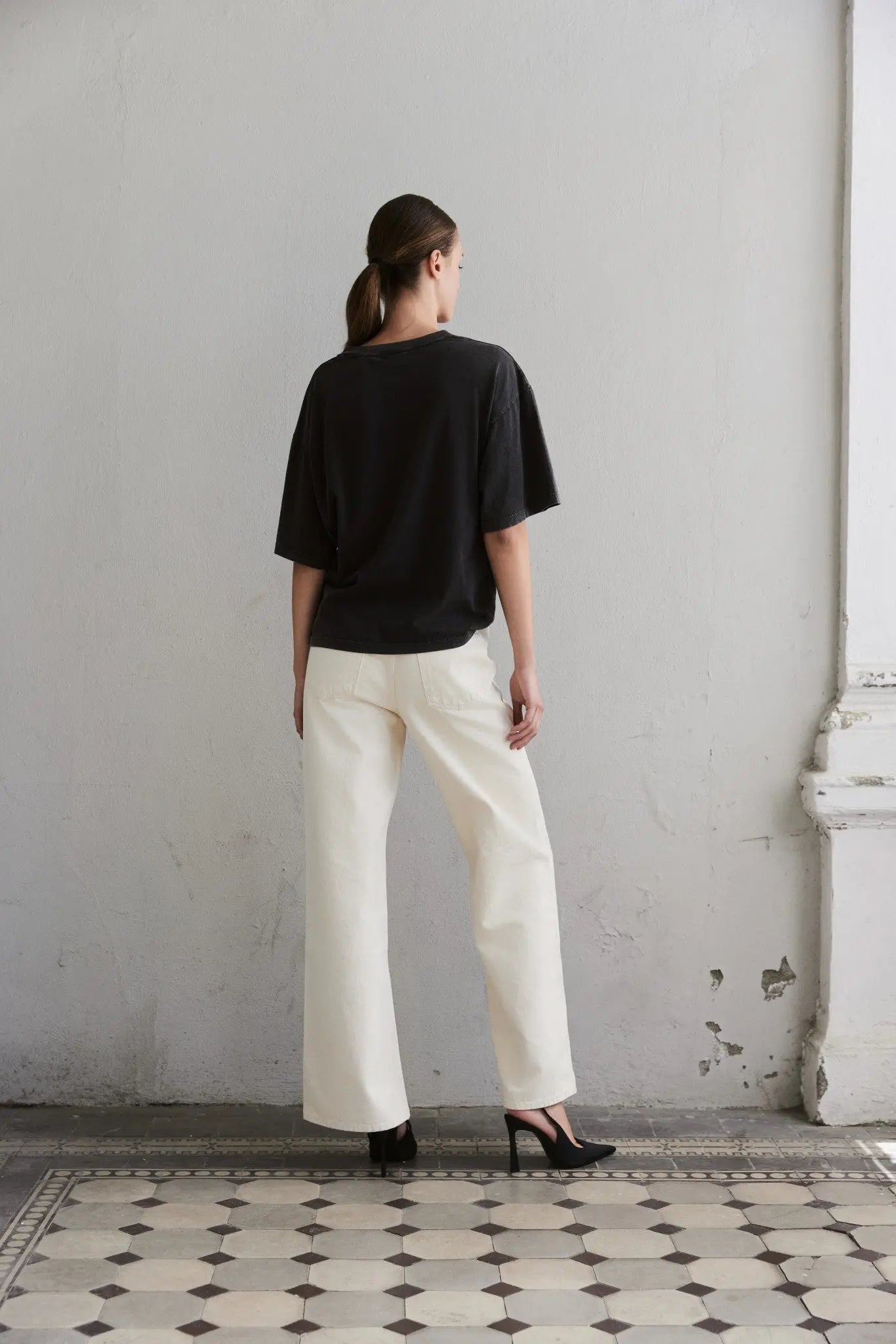 With its classic crew neckline, slightly dropped shoulders and relaxed fit, this tee is perfect on its own or layered under a blazer, knit, or shirt. A timeless essential that works in any wardrobe, season after season.