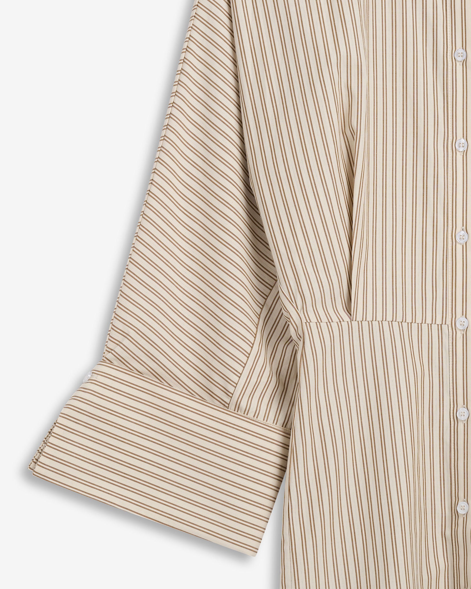 Atari Dress is a modern evolution of our best-selling signature shirt - reimagined as an effortless, statement-making dress in fresh, light summer stripes. Designed with the same iconic silhouette you love, this piece combines relaxed elegance with bold, sculptural sleeve cuffs, for a confident and contemporary look.