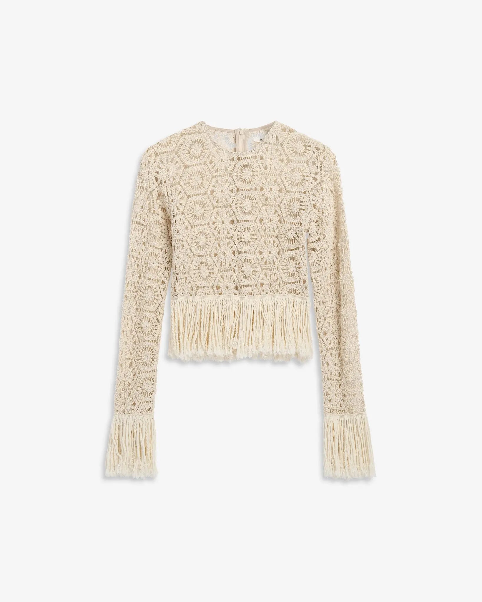 This standout crochet top is crafted in 100% raw cotton, offering a soft, natural feel. Featuring delicate fringes along the sleeves and hem, it combines handcrafted detail with a modern, bohemian touch. Lightweight, airy, and effortlessly stylish, the Crete Top is perfect for layering or wearing on its own.