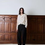Designed with the trendy barrel shape, the style features a soft volume through the thighs that tapers elegantly towards the ankle - creating a modern, sculptural silhouette. A hidden zipper and clean waist with precise darts ensure a smooth and flattering fit through the waist and hips.